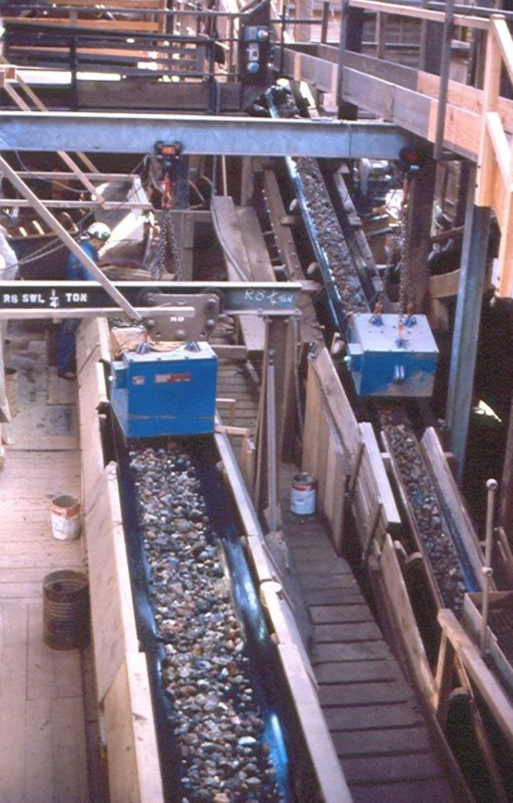 Picking belt in the washing plant , note magnets to remove tramp irom to protect cone crushers