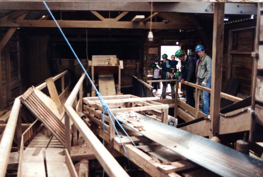 Ore handling conveyor belts, Victory Shaft 1991. Laurie Done and family are shown around by Eric Gale.
