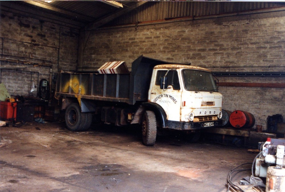 Rusting away in a shed, one of Geevor Mines vehicles. Sept. 1991