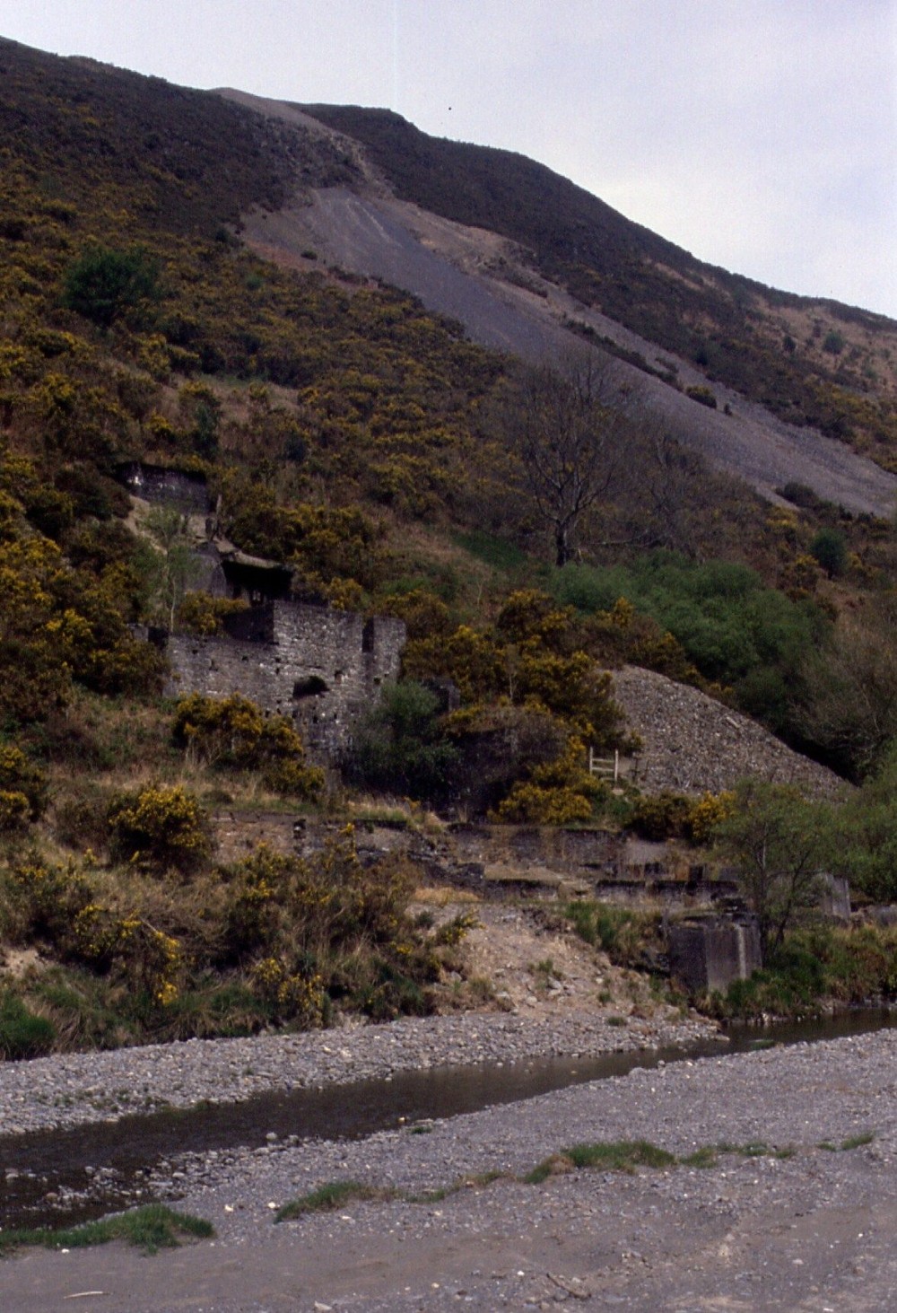 Taken from Afon Ystwyth, there is an open adit higher up the hillside.