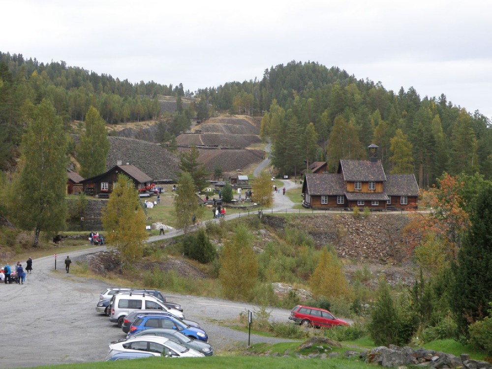 General site view looking north. Sorting house to the right, mullock heaps along the edge of the workings in the middle distance and offices/canteen to the left.