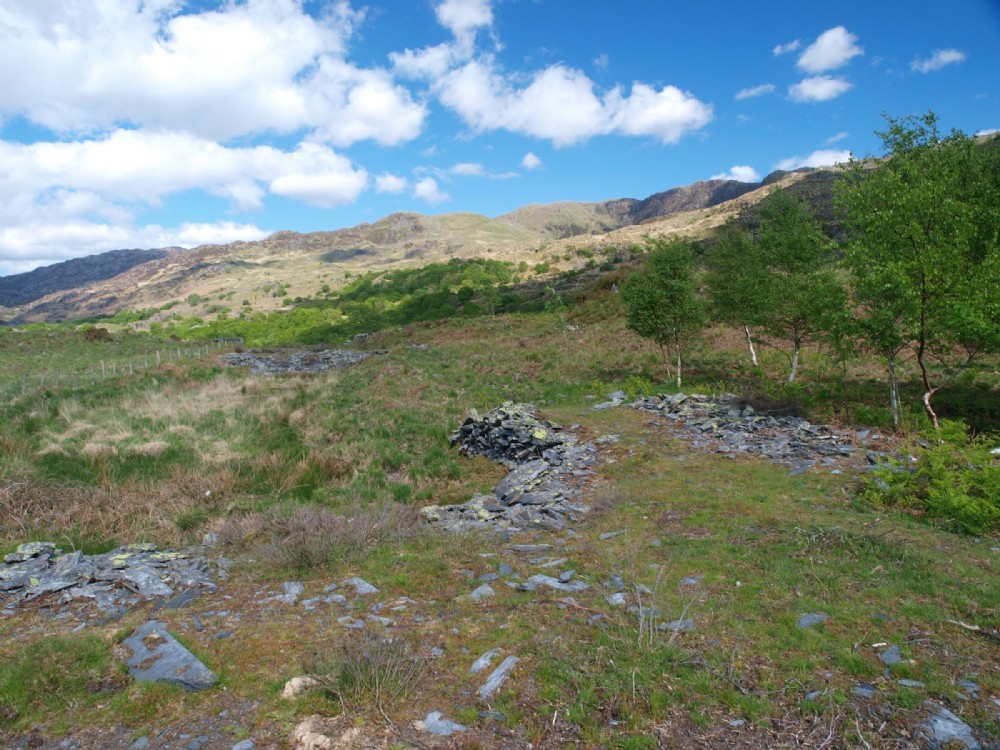 Landscape looking NE. on the top level. Possible remains of water holding pond on the left and tip run on the right.