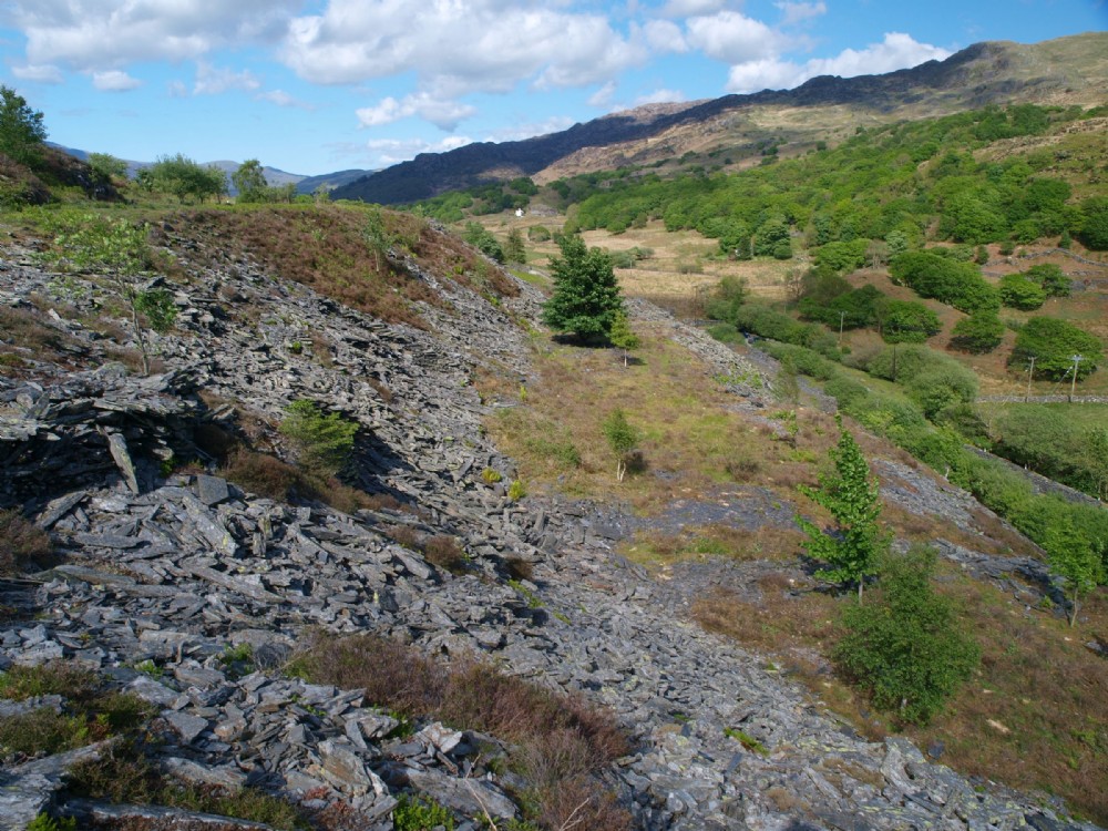 Landscape view looking NE. up Blaen Nanmor along the tip runs.