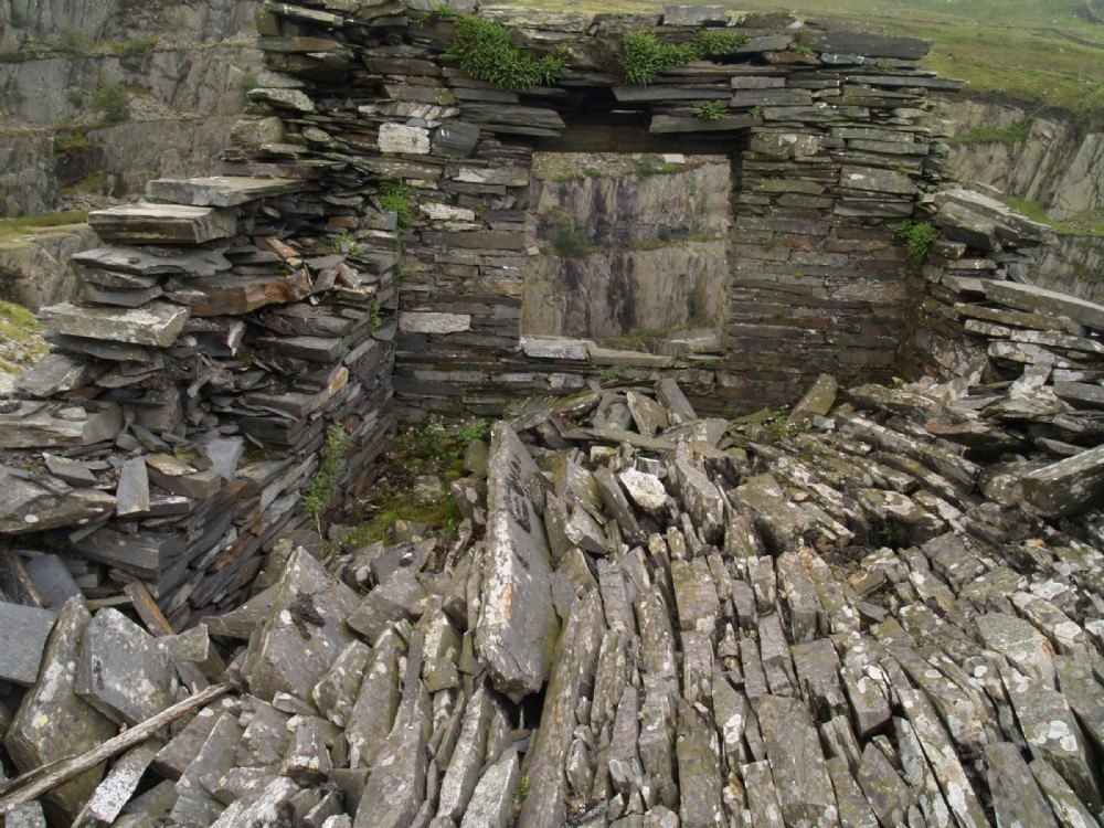 Remains of building associated with the pit winding-house. All subsiding to quite a great extent. The side, left-hand wall appears to have collapsed in one, whole fall!