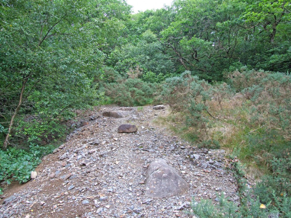 Following the stream uphill through the woods, the spoil is the first indication of mining activity