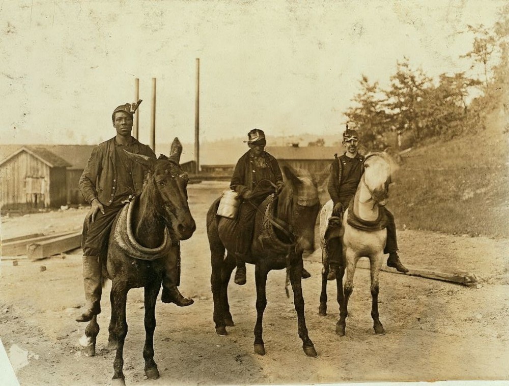 Drivers going home, 5:30 P.M. from Macdonald Mine.