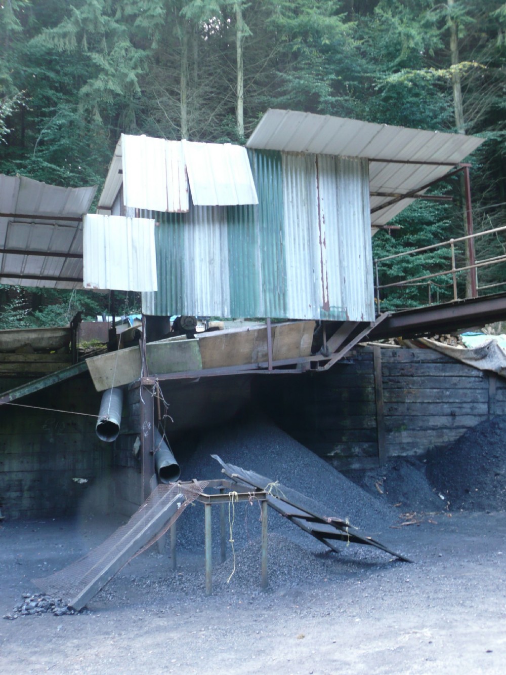 Primary graded coal discharges from the two ducts hanging down from the plant. Secondary grading is done with the inclined screens in the foreground.