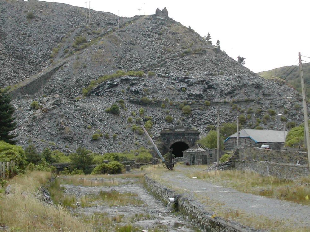 General view of wharf site. Large building in background is hydro power station. Old road retaining wall to right.