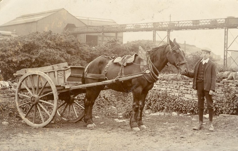 Shows the overhead gantry used to carry the tubs from the shaft over to the screens, dated early 1900's