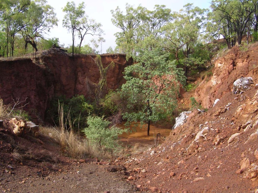 View of the open pit from the east. Note limestone outcrop n northern wall.