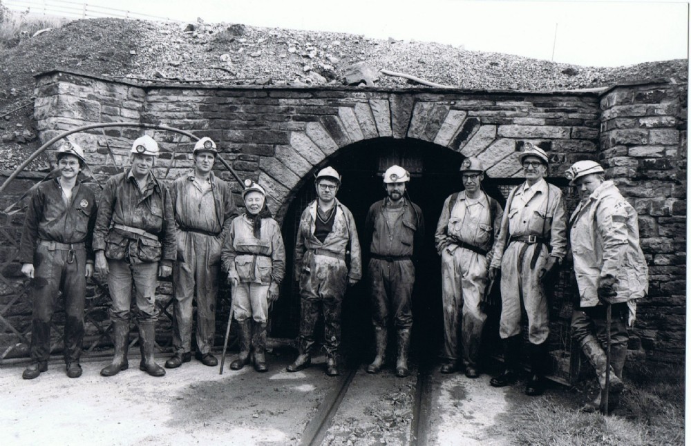 Grove Rake 1977 Adit entrance - Sept 1984 L to R JMcN (probably), DH, ML, HGM, DS, Dave Strutt - Company Geologist ( info from legendrider and sparlad), JFM, Dick Lester, HMP.