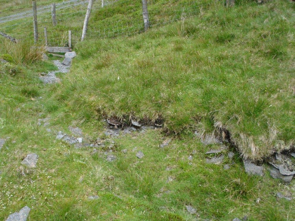 This gully leads to the shaft shown in the previous photo and appears to be a modern feature diverting water down the shaft for purposes unknown