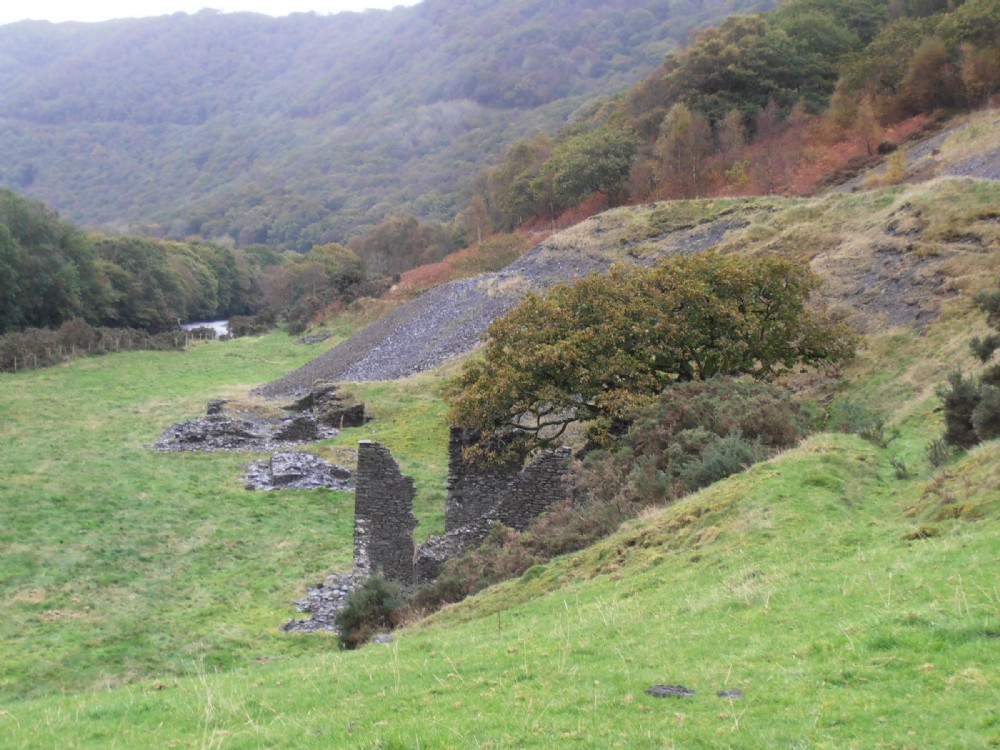 The smithy I believe in the foreground and the tips from the deep adit behind. The waterwheel pit and the crusher house can be seen on the head of the tips.