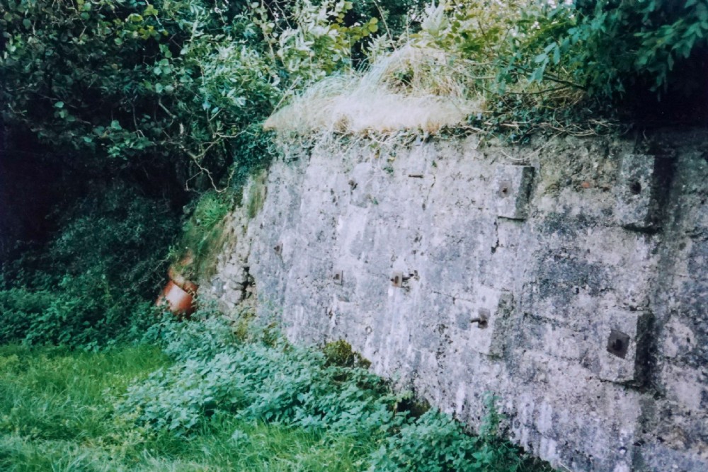 Concrete junction built into hedge being the union betwen open leat on hedge top and underground pipe. This served the turbine house suplying power to Park China Clay Works