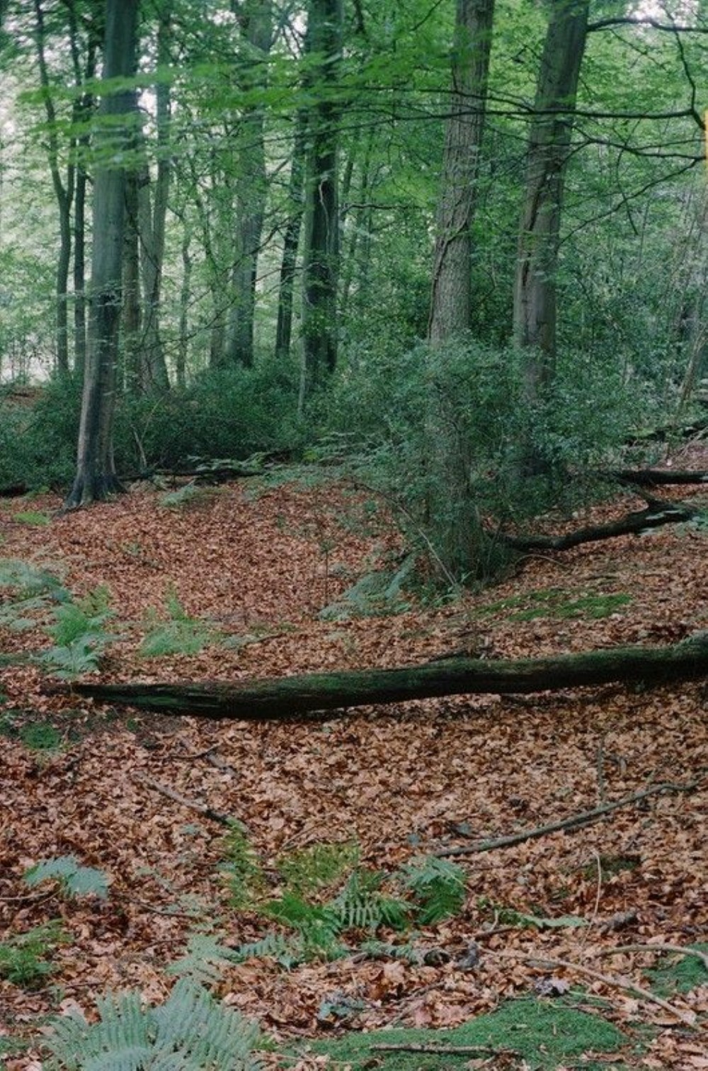 Description: Hammonds Wood, Bedham, 4.5 km. NW of Pulborough Railway Station. Bell-pits in the Weald Clay. Ironstone in the Weald Clay was formerly extracted by means of 'bell-pits' - bell shaped shafts. After extraction of the iron the pits were left to collapse, resulting in saucer-shaped surface depressions up to 3 m. in diameter. Because of the uneven topography which remained, and the poorly drained nature of the ground, the areas of bell-pits commonly survive in woods and allow the horizon of the ironstone to be traced.