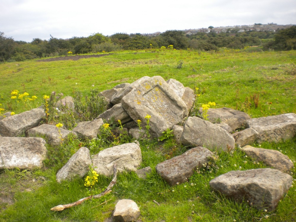Stone blocks from the waggonway disgarded by the farmer close to the track bed.