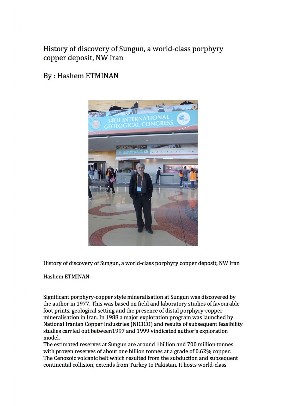 Hashem Etminan''s talk at 2012 IGC-Brisbane, Queensland, Australia