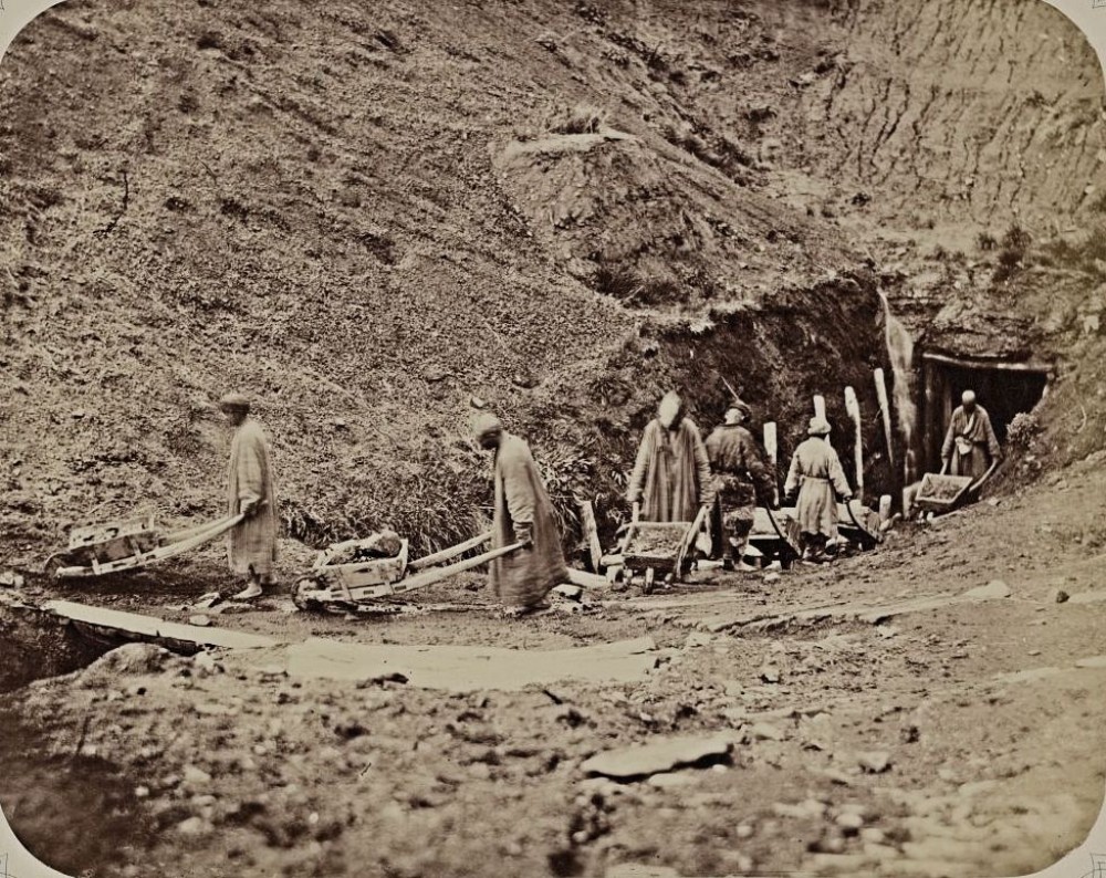 Syr Darya oblast. Tatarinov coal mine of the Chimkent uezd. Hauling coal from the underground tunnels