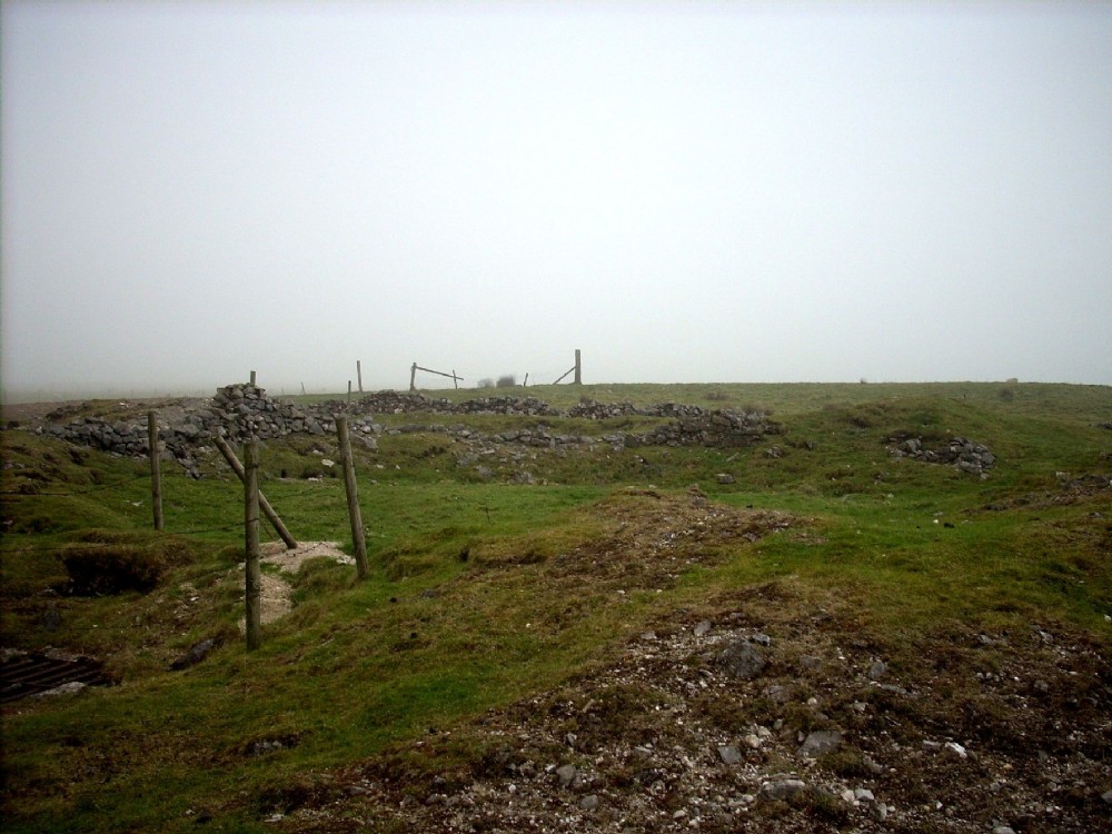 View of remains at Hazard showing enclouse with gin circle and grilled shaft to left (16 April 2009)