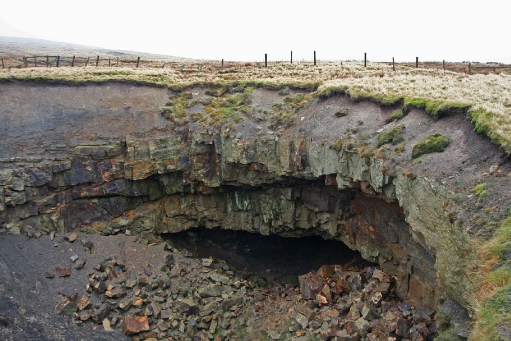 Collapse at the eastern end of the Groove Rake. This was originally an ironstone working but later it was reworked for fluorite via the Rake Level from Groverake Mine.