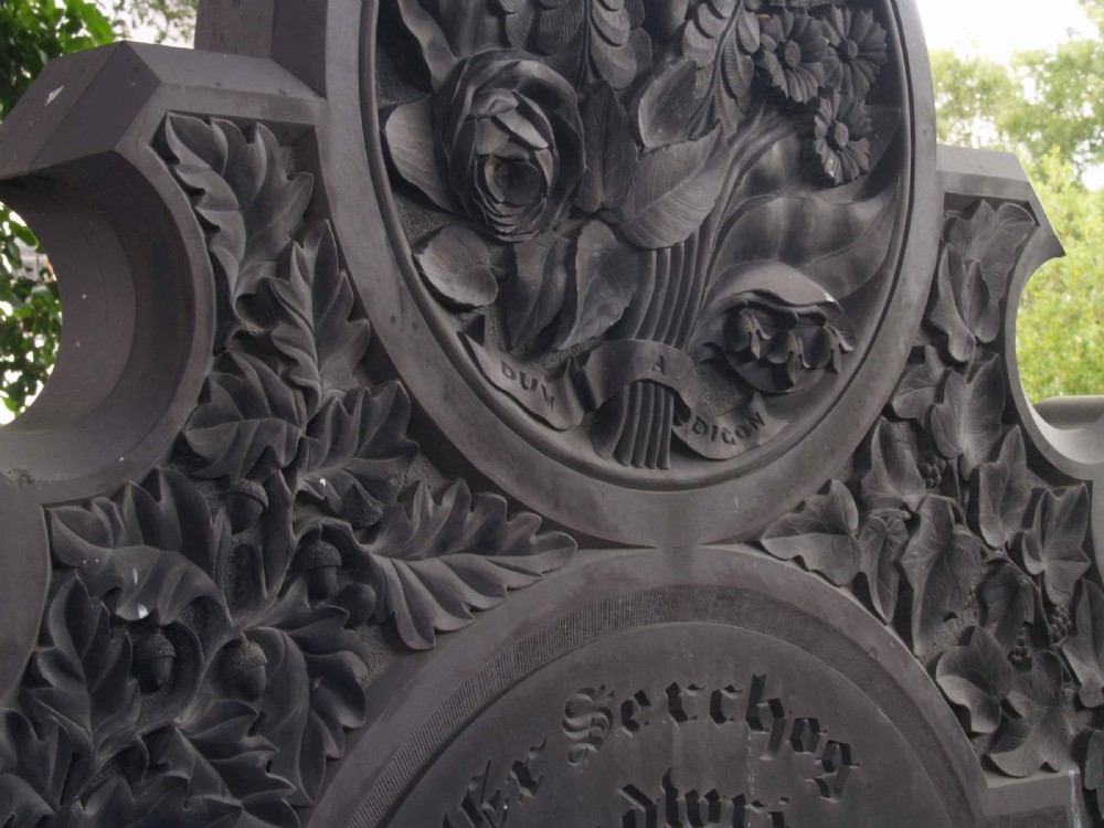 Carved, slate, grave headstone.