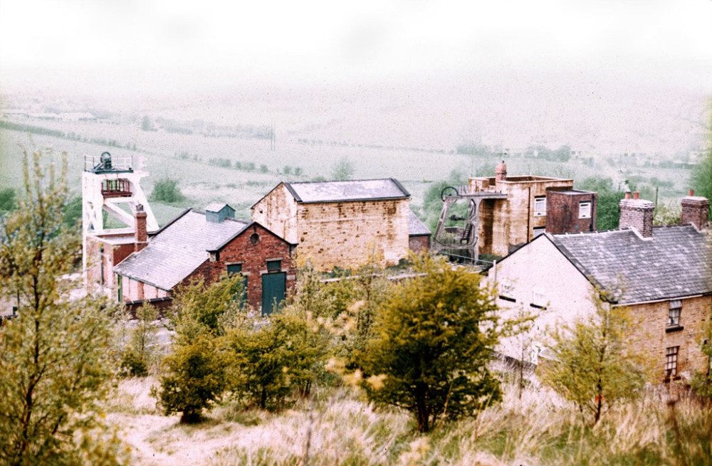 View of the mine site from the mound on the opposite side of the road. (Scanned from a damaged slide, image restored as much as possible in Photoshop).