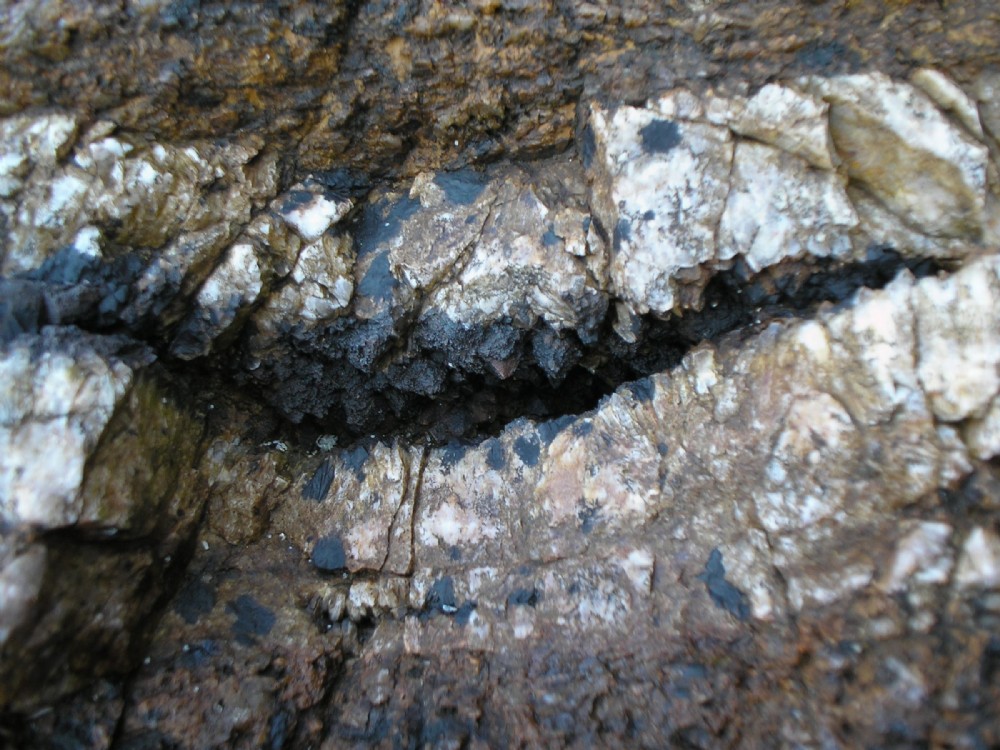 Close-up of lode showing cassiderite crystals. Hermon is still considered a good bet for tin but environmental reasons will probably prevent it being worked again.