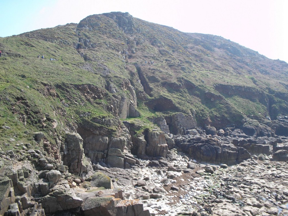 General view of Hermon Cliff showing the stopes leading into the hill. Although there is no direct evidence it is possible some of these workings may be pre-historic.