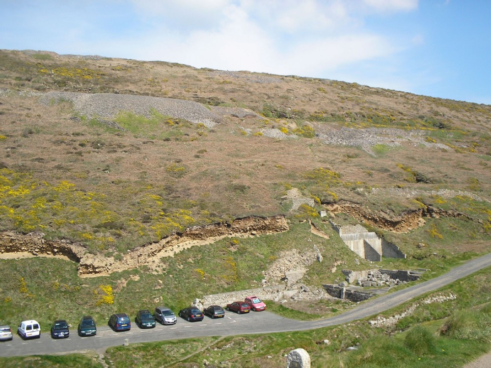 Another shot across the Cot Valley toward Bosorne and Ballowall mines showing material strewn across the hillside.