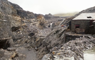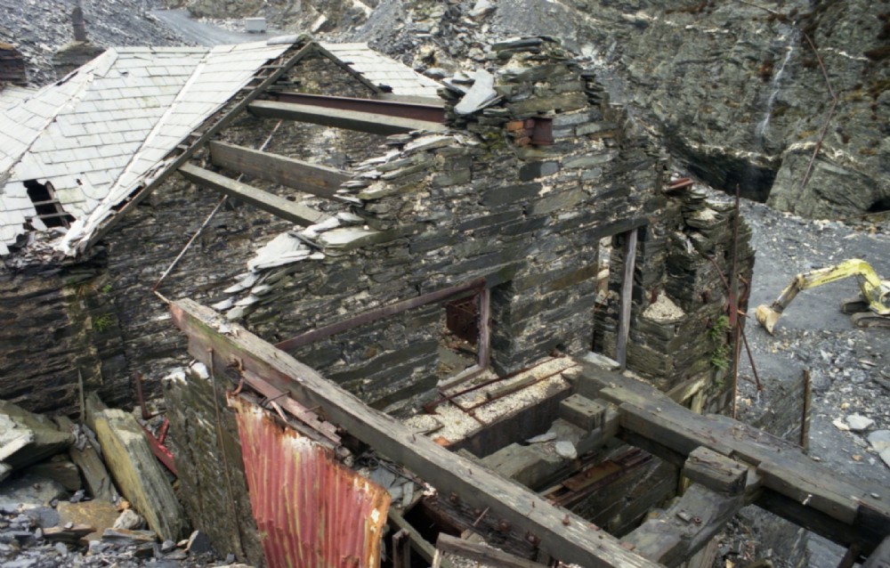 From left to right are the (roofed) compressor shed (ex-boiler house), the (roofless) incline motor and control house, and then the drumhouse. The landing for this incline was so short that the winding ropes were taken backwards from the drums above the DE floor tramways, round a set of sheaves and then back under the drums again to the crimp!