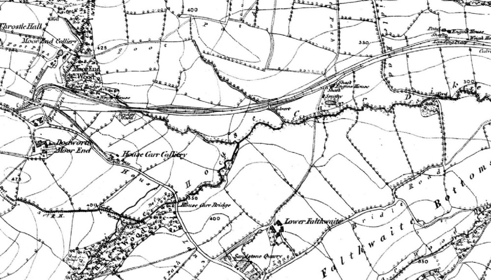 Ordnance Survey map extract from 1851 showing House Carr Colliery just under 1 mile south-east of Silkstone Common.