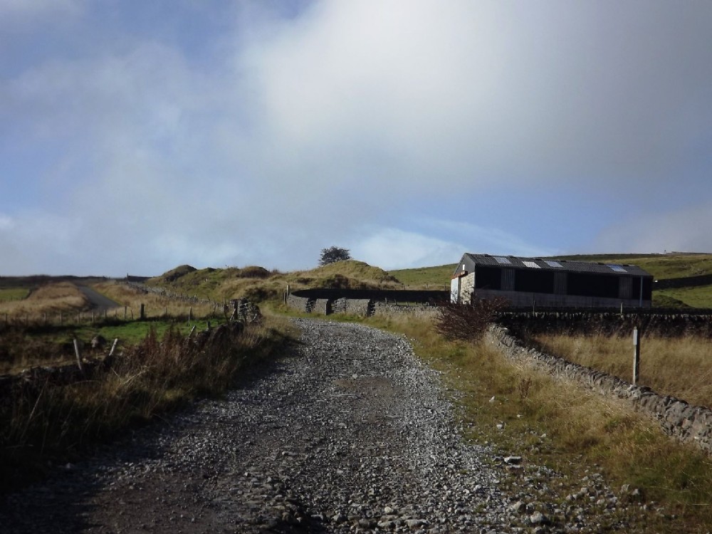 The excavated remains of How Grove are in the hillocks beyond the modern barn. The eastern shaft is against the fence behind the barn. Oct 2011