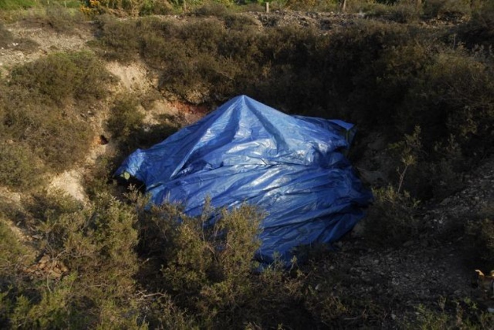 In about 1943, this area was getting a lot of attention for Wolfram and G.A.P Moorhead opened this shaft up to have a look for the source of wolfram in hedge-stones. He couldn't find it, but the shaft remains pretty much the only one open in the area. Whilst stumbling across this shaft about a year ago, we were surprised to note that the usual wire cone had been wrapped with a tarpaulin. We obviously removed it.