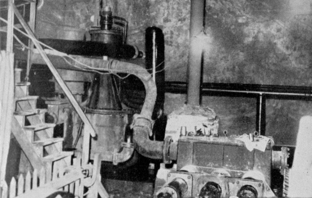 The water pressure from the old Hafodty quarry reservoir was used to help the electric pumping by driving a "Hydrostat" pump. This was situated on the D floor, now flooded, a chamber to the west of the Old Robey incline.