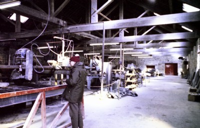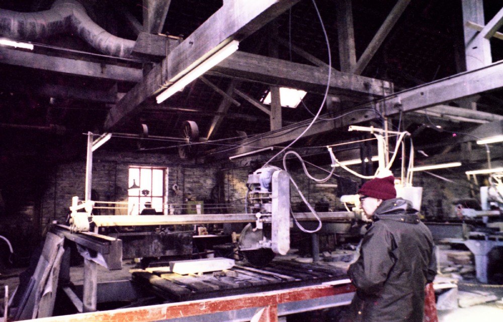 Another view in the mill - with one of the smaller diamond saws. Up in the rafters above the roof beams you can see part of the suction ducting which was installed from the 1950's onwards to combat the dust from saws, planers etc.