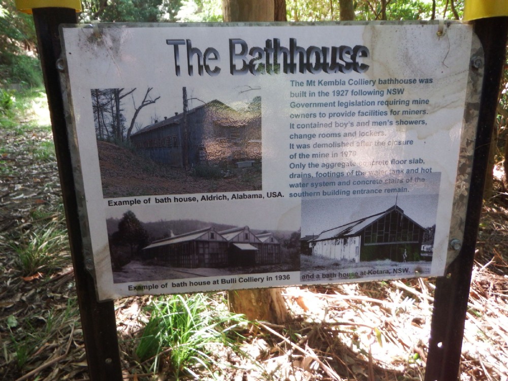 One of several information boards around the mine site. Nothing left now of the bathhouse apart from some foundation stones.
