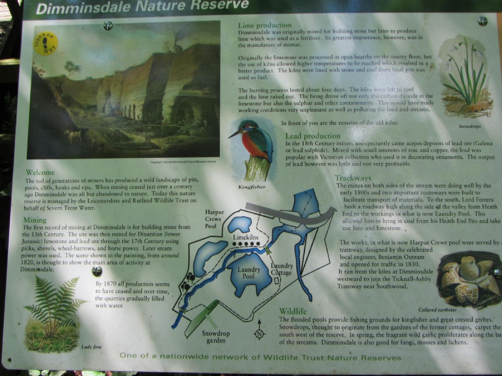 Information board at the site of the limestone quarry / mine, and lead mine. The lead mine was not very productive. There are some shafts in the nature reserve but these were not evident without a thorough search through the undergrowth.
