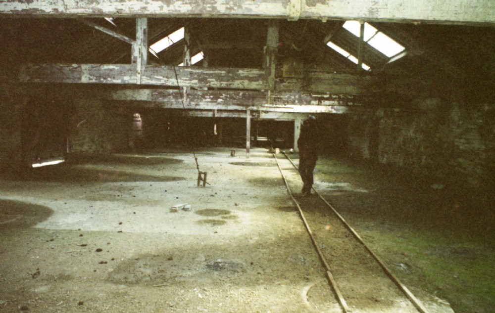 My flash just wasn't very good in those early days, but it does give an impression of the mill, which WAS very gloomy. The wire attached to the stake in the floor was to brace the timber roof frames and stop them going over! The mill floor had been concreted over at some time, dating from when they used it for unpacking/storing/packing explosives.