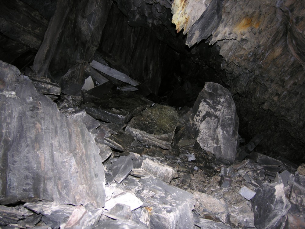 A general view inside the void left by the roof collapse in the floor 8 adit. This area is very close to the surface and the collapse will be due to the untopping.