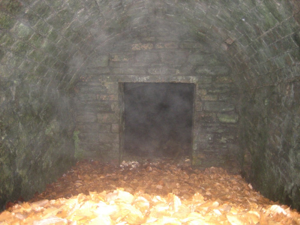 Photo inside the gated entrance, small alcove leading to the level gong into the hillside. 2013.