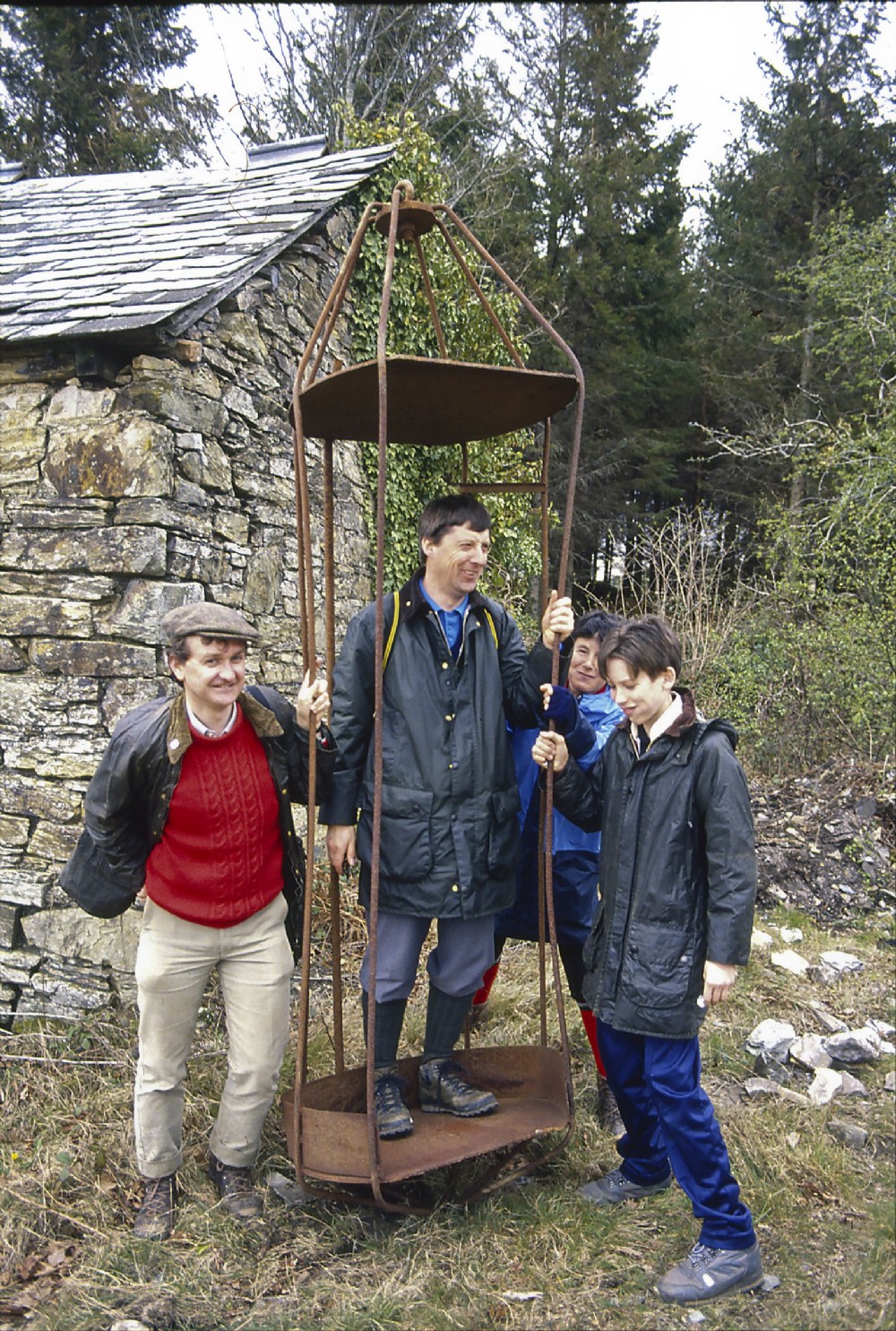 This was seemingly a one man shaft inspection cage, and was found reposing not far from the large chimney which continues to dominate the site. Of it's whereabouts now, who knows?