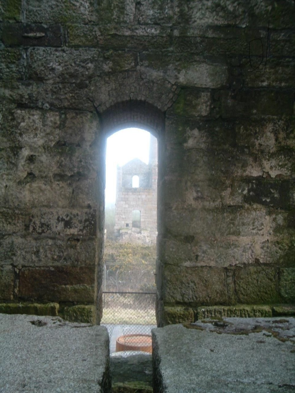View from the cylinder bedstone of the pumping engine house through the plug door to the whim house.