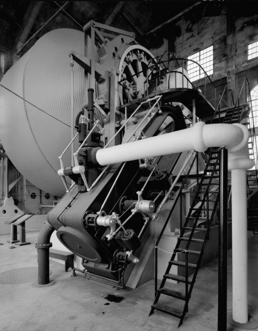 Jet Lowe, Photographer, July 1978. INTERIOR VIEW OF NO. 2 HOIST HOUSE, SHOWING 1920 NORDBERG HOIST WITH HIGH PRESSURE CYLINDER IN FOREGROUND.