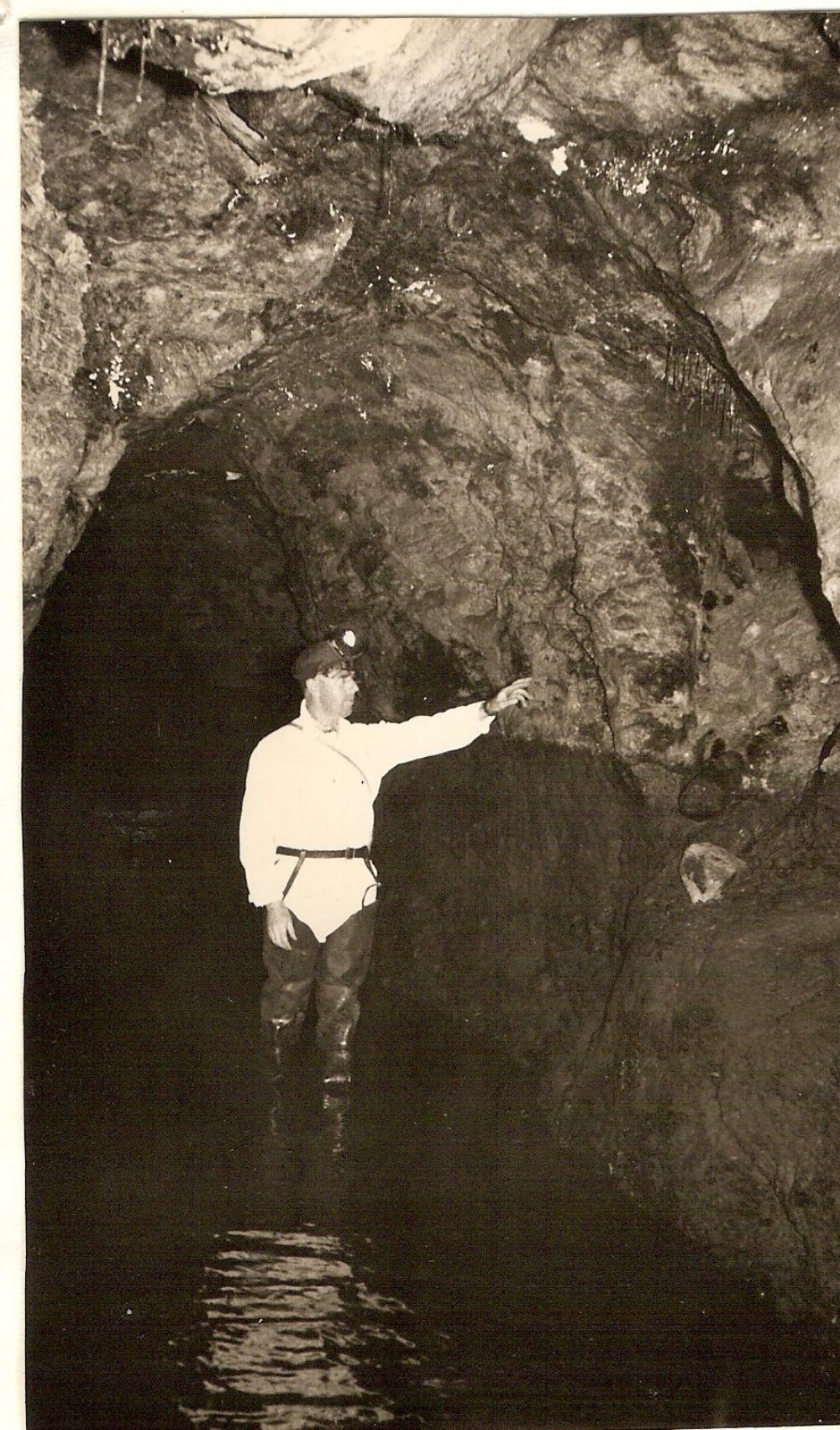Another lode to cross the route of the tunnel below Morwell Down is the Georgina Lode. All the 1965 B and W shots in this album were taken on a Kodak Retinette 1a camera, using ex-RAF HP3 film and lit using a single flasbulb and cap lamps. The film was home-processed and printed.