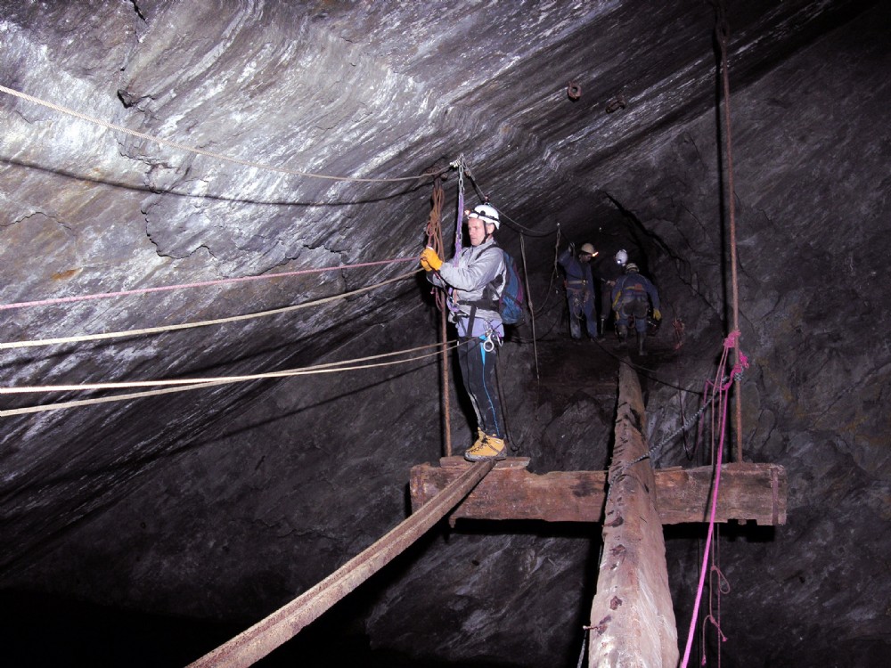 John (this one in grey) on the central support looking unreasonably relaxed.