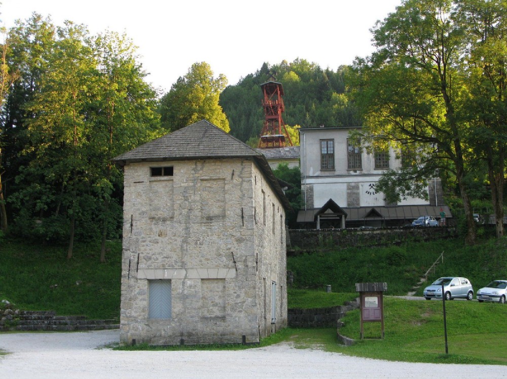 housing the 13.6m diameter wooden waterwheel which drove pumps. Behind is the headframe for the Josef shaft. 27/06/2011