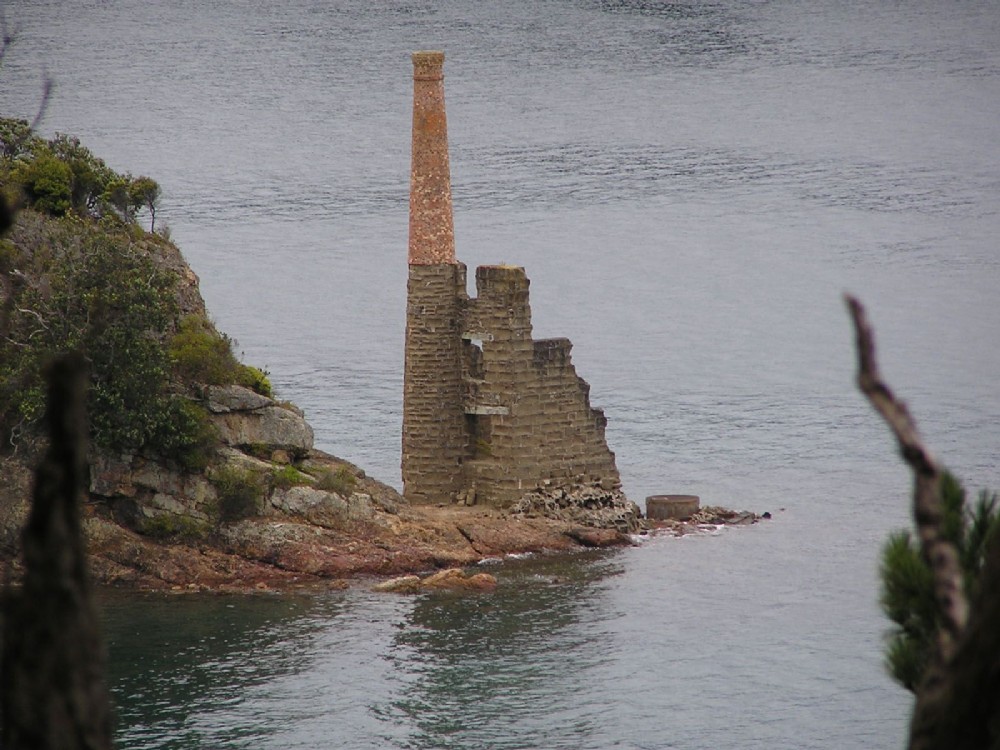 A view of the Kawau Island Engine House from the footpath along the cliffs.