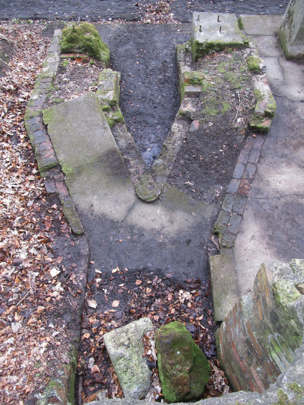The Y shaped passages coming from the fan drift and toward the two concrete blocks allowed air to be drawn into both sides of the fan before being expelled out of the chimney, this is why its a double inlet fanhouse.