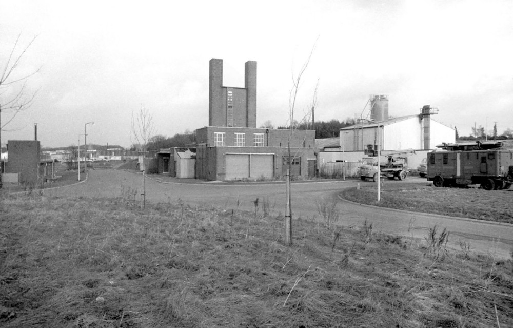 View North of the pit head baths building, from the approximate site of the unsuccessful 1872 shafts. The 1950s office building is just visible on the left.