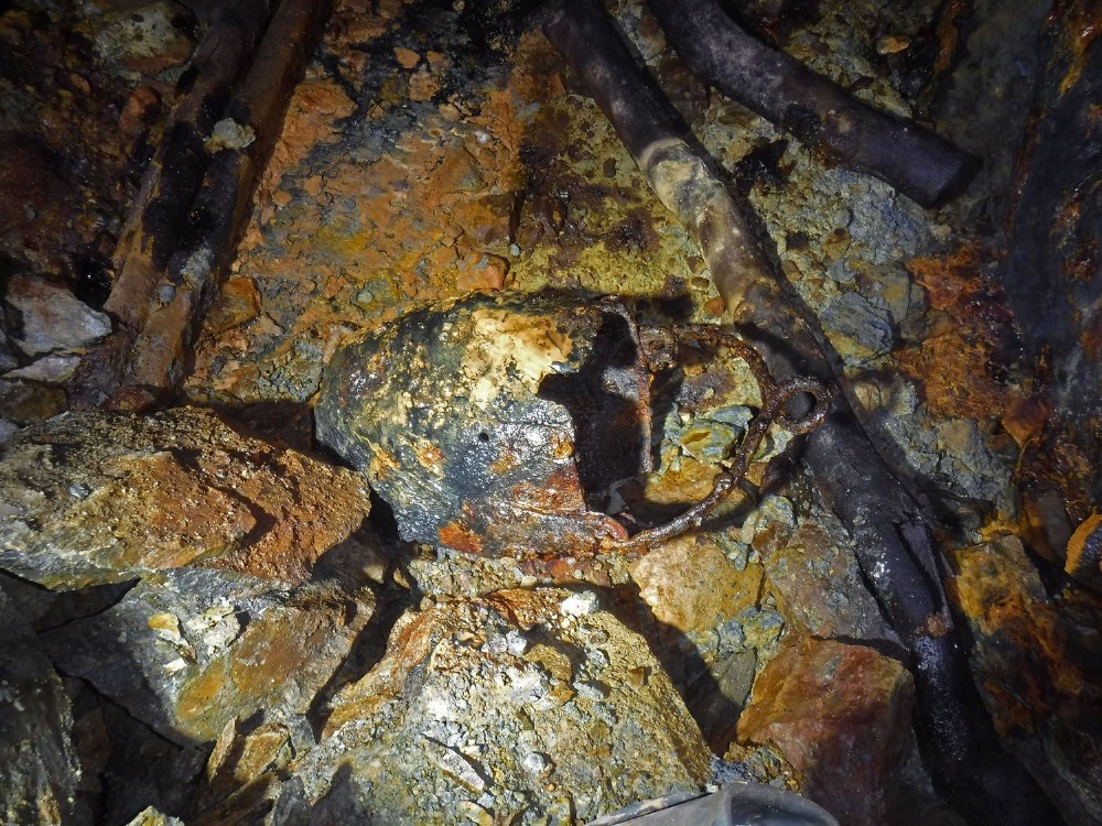 The original location was at the bottom of a collapse at the back of the bank of deads and backfill. If left there it would be at risk from becoming burried so it was removed and relocated at the top.